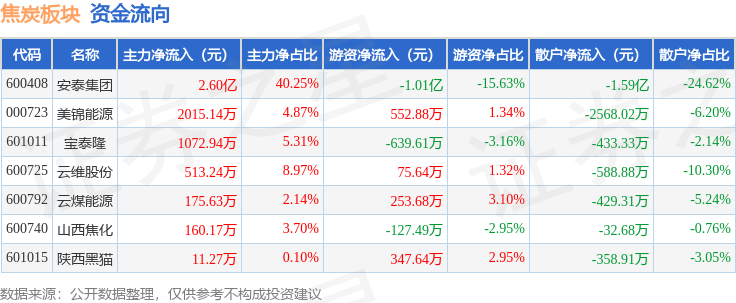 从资金流向上来看,当日焦炭板块主力资金净流入3.0亿元,游资资金净流出9654.15万元,散户资金净流出2.03亿元。焦炭板块个股资金流向见下表: