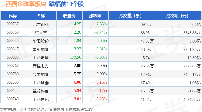 从资金流向上来看,当日山西国企改革板块主力资金净流出8554.35万元,游资资金净流入2614.41万元,散户资金净流入5939.94万元。山西国企改革板块个股资金流向见下表: