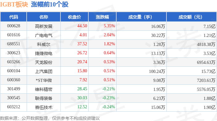 从资金流向上来看,当日IGBT板块主力资金净流出20.52亿元,游资资金净流入5.36亿元,散户资金净流入15.16亿元。IGBT板块个股资金流向见下表: