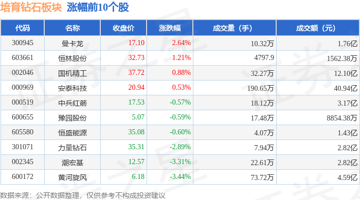 证券之星消息,12月15日培育钻石板块较上一交易日下跌1.77%,四方达领跌。当日上证指数报收于3867.92,下跌0.55%。深证成指报收于13112.09,下跌1.1%。培育钻石板块个股涨跌见下表: