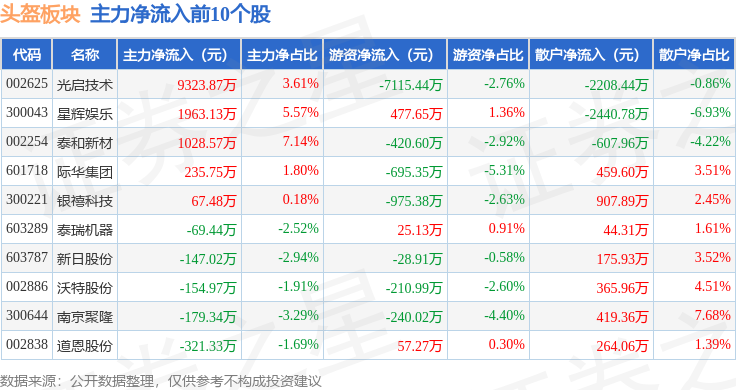 从资金流向上来看,当日头盔板块主力资金净流出5.14亿元,游资资金净流入2526.04万元,散户资金净流入4.89亿元。头盔板块个股资金流向见下表: