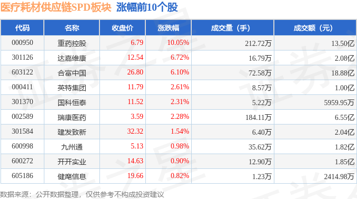 从资金流向上来看,当日医疗耗材供应链SPD板块主力资金净流入1.91亿元,游资资金净流出1.06亿元,散户资金净流出8462.12万元。医疗耗材供应链SPD板块个股资金流向见下表: