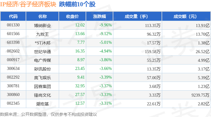 从资金流向上来看,当日IP经济/谷子经济板块主力资金净流出12.97亿元,游资资金净流入4724.71万元,散户资金净流入12.49亿元。IP经济/谷子经济板块个股资金流向见下表: