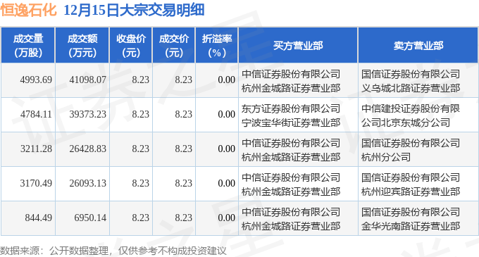 证券之星消息,12月15日恒逸石化发生大宗交易,交易数据如下: