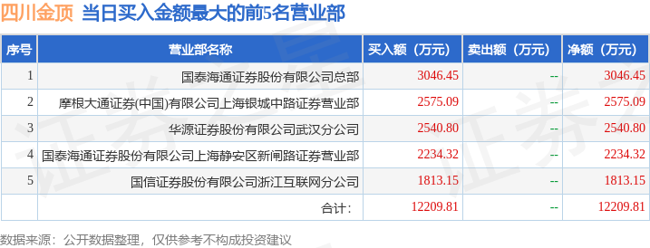 证券之星消息,沪深交易所2025年12月15日公布的交易公开信息显示,四川金顶(600678)因有价格涨跌幅限制的日换手率达到20%的前五只证券登上龙虎榜。此次是近5个交易日内第4次上榜。