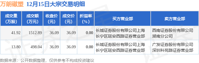 证券之星消息,12月15日万朗磁塑发生大宗交易,交易数据如下: