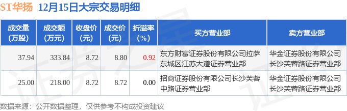 证券之星消息,12月15日ST华扬发生大宗交易,交易数据如下: