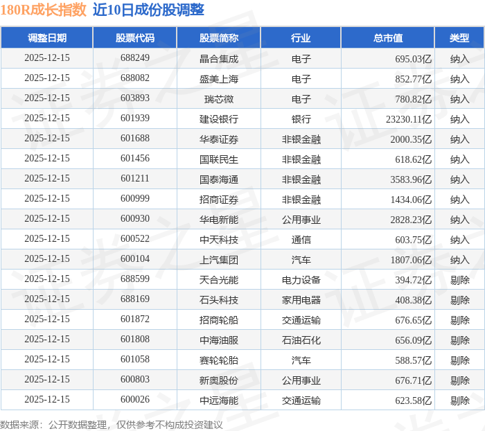 近10日内180R成长(000030)指数成份股做了调整,新纳入了11只股票,剔除了7只股票。