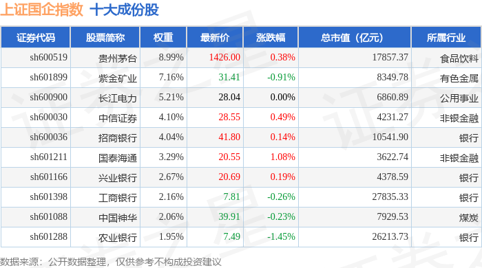 上证国企(000056)指数十大成份股详情如下: