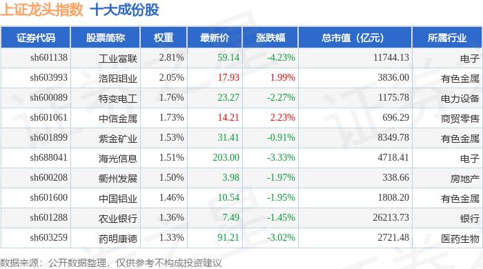 上证龙头(000065)指数十大成份股详情如下: