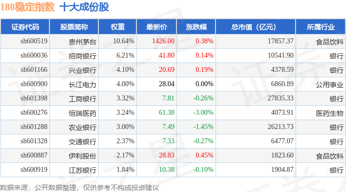 证券之星消息,12月15日,180稳定(000125)指数报收于11803.63点,跌0.3%,成交732.02亿元,换手率0.26%。当日该指数成份股中,上涨的有43家,招商轮船以2.86%的涨幅领涨,下跌的有44家,中国中车以4.37%的跌幅领跌。