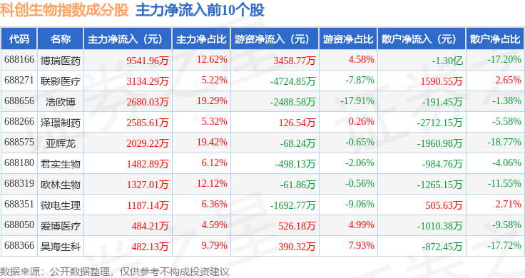 资金流向方面,科创生物(000683)指数成份股当日主力资金净流出合计2.56亿元,游资资金净流入合计2.39亿元,散户资金净流入合计1710.64万元。成份股资金流向详情见下表: