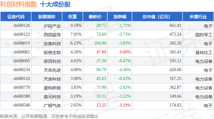 近10日内科创材料(000689)指数成份股做了调整,新纳入了2只股票,剔除了2只股票。