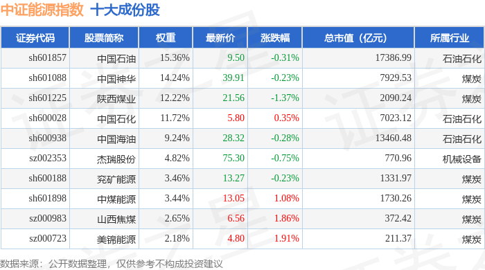 近10日内中证能源(000928)指数成份股做了调整,剔除了1只股票。