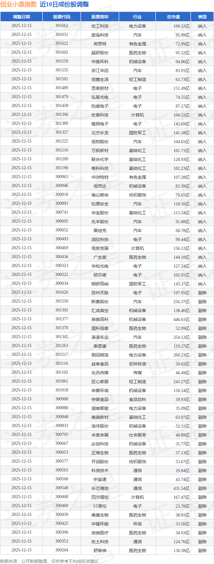 近10日内创业小盘(399020)指数成份股做了调整,新纳入了30只股票,剔除了30只股票。
