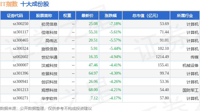 IT指数(399239)十大成份股详情如下: