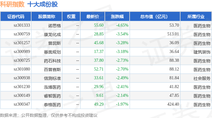 科研指数(399243)十大成份股详情如下: