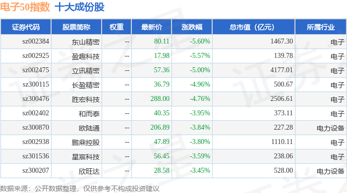 近10日内电子50(399281)指数成份股做了调整,新纳入了3只股票,剔除了3只股票。