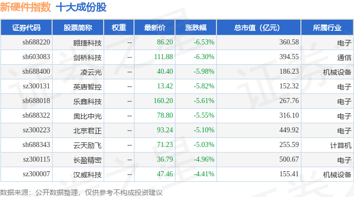 近10日内新硬件(399360)指数成份股做了调整,新纳入了2只股票,剔除了2只股票。