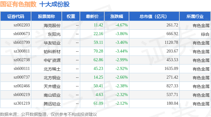 资金流向方面,国证有色(399395)指数成份股当日主力资金净流出合计38.7亿元,游资资金净流入合计13.94亿元,散户资金净流入合计24.77亿元。成份股资金流向详情见下表: