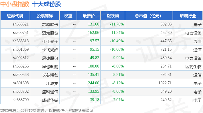 资金流向方面,中小盘(399401)指数成份股当日主力资金净流出合计202.8亿元,游资资金净流入合计25.12亿元,散户资金净流入合计176.93亿元。成份股资金流向详情见下表: