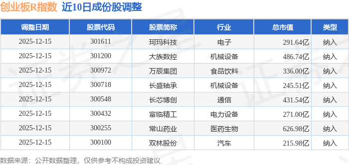 近10日内创业板R(399606)指数成份股做了调整,新纳入了8只股票。