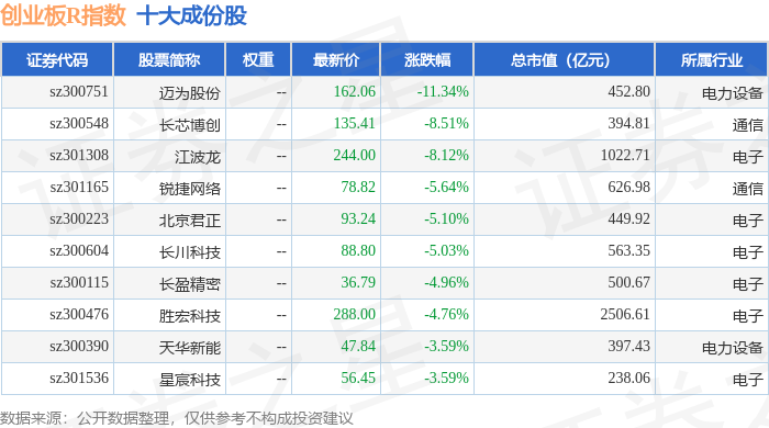创业板R(399606)指数十大成份股详情如下: