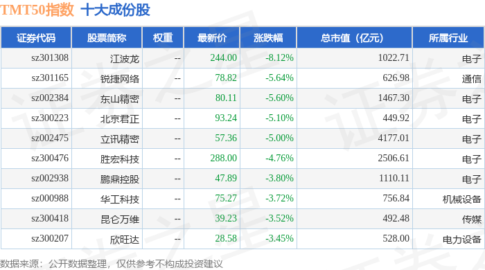 近10日内TMT50(399610)指数成份股做了调整,新纳入了2只股票,剔除了2只股票。