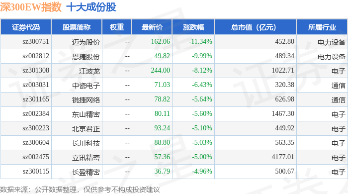 资金流向方面,深300EW(399633)指数成份股当日主力资金净流出合计170.98亿元,游资资金净流入合计32.59亿元,散户资金净流入合计138.39亿元。成份股资金流向详情见下表: