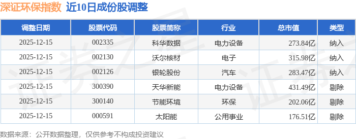 近10日内深证环保(399638)指数成份股做了调整,新纳入了3只股票,剔除了3只股票。
