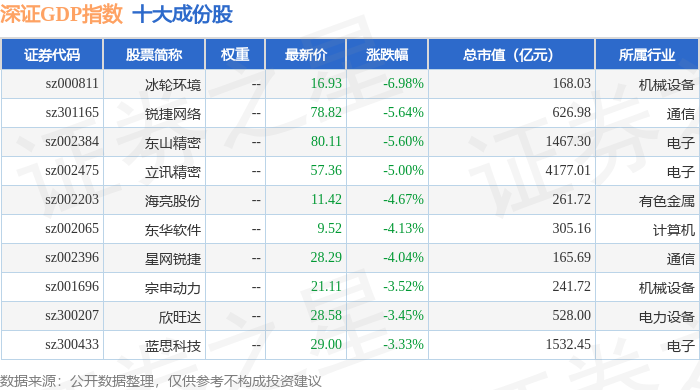 深证GDP(399648)指数十大成份股详情如下: