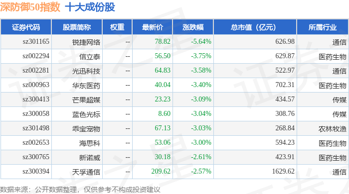 深防御50(399671)指数十大成份股详情如下:
