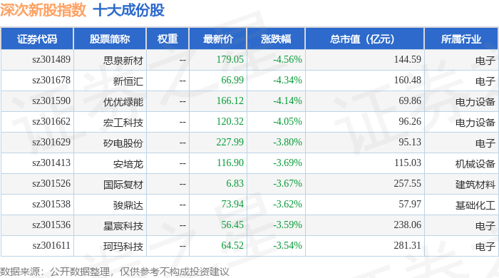 深次新股(399678)指数十大成份股详情如下: