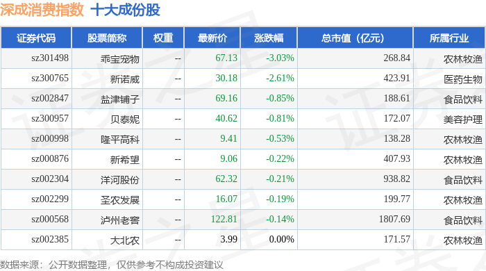 深成消费(399684)指数十大成份股详情如下: