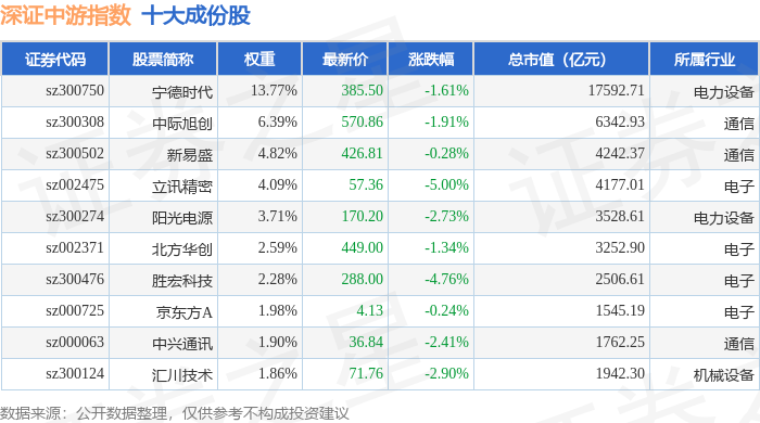 证券之星消息,12月15日,深证中游(399705)指数报收于4215.99点,跌1.72%,成交2443.3亿元,换手率1.76%。当日该指数成份股中,上涨的有42家,太钢不锈以9.95%的涨幅领涨,下跌的有106家,迈为股份以11.34%的跌幅领跌。