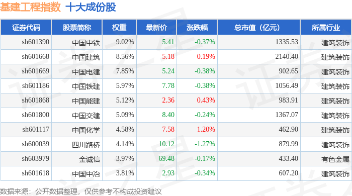 资金流向方面,基建工程(399995)指数成份股当日主力资金净流出合计8.15亿元,游资资金净流出合计571.24万元,散户资金净流入合计8.21亿元。成份股资金流向详情见下表: