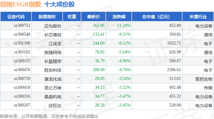 创指ESGR(470028)指数十大成份股详情如下: