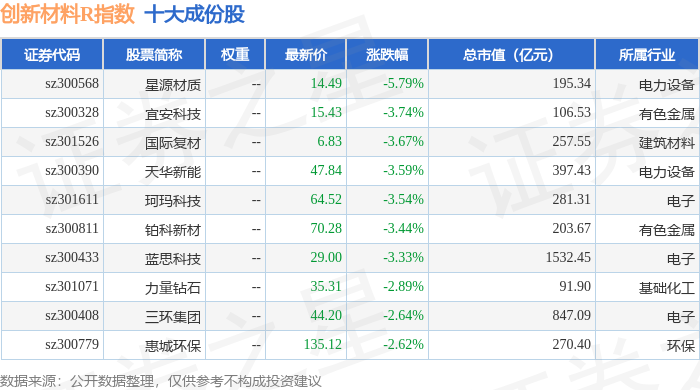 近10日内创新材料R(470039)指数成份股做了调整,新纳入了5只股票,剔除了5只股票。