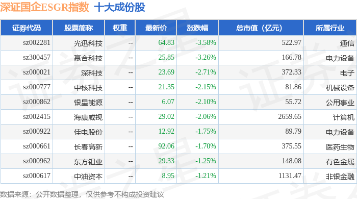 深证国企ESGR(470055)指数十大成份股详情如下: