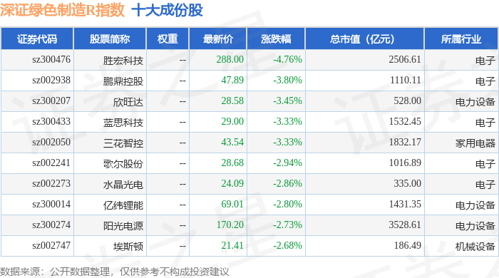 深证绿色制造R(470069)指数十大成份股详情如下: