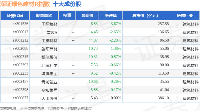 深证绿色建材R(470077)指数十大成份股详情如下: