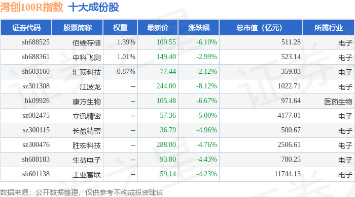 近10日内湾创100R(480001)指数成份股做了调整,剔除了1只股票。