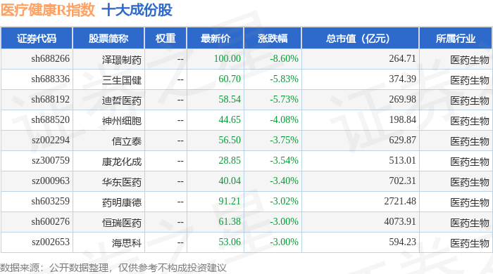 医疗健康R(480016)指数十大成份股详情如下: