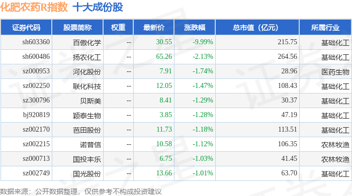 近10日内化肥农药R(480035)指数成份股做了调整,新纳入了4只股票,剔除了20只股票。
