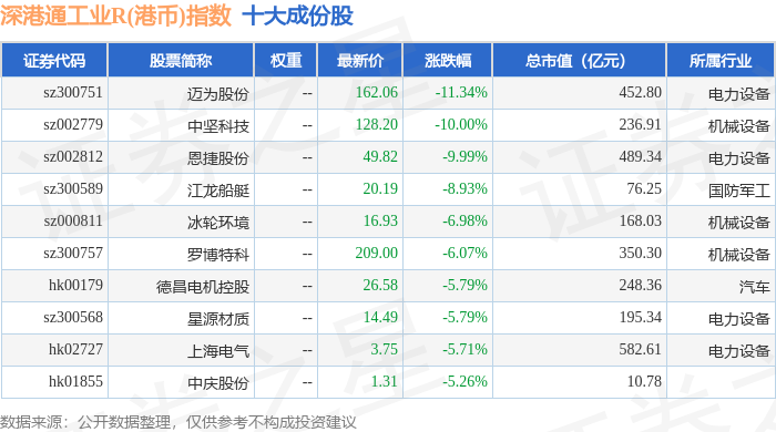 深港通工业R(港币)(483018)指数十大成份股详情如下: