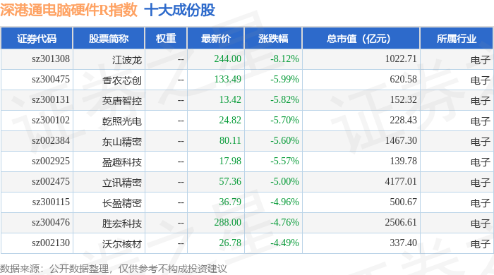 深港通电脑硬件R(483043)指数十大成份股详情如下: