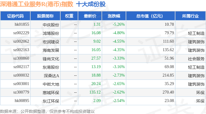 深港通工业服务R(港币)(483056)指数十大成份股详情如下: