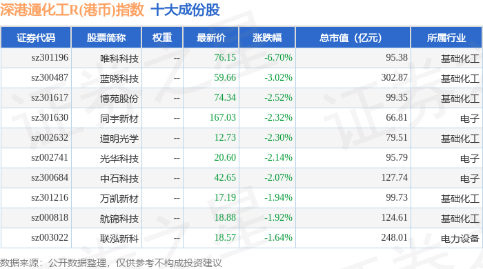 深港通化工R(港币)(483064)指数十大成份股详情如下: