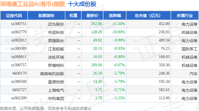 深港通工业品R(港币)(483070)指数十大成份股详情如下: