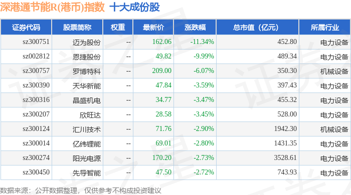 深港通节能R(港币)(483086)指数十大成份股详情如下: